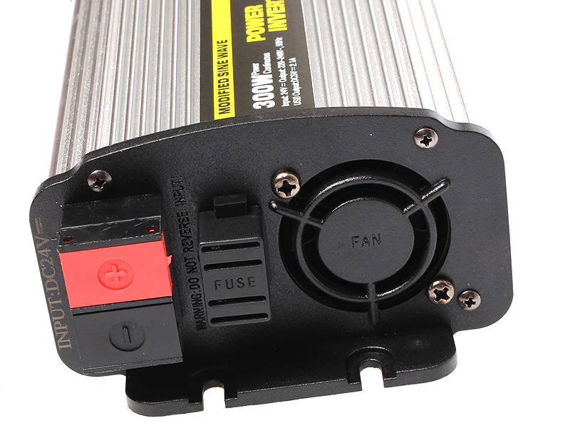 Měnič 24/230V 300W s maximálním výkonem 600W je vhodný na použití malých spotrebičů na 230V v místě bez dosahu elektrické sítě.