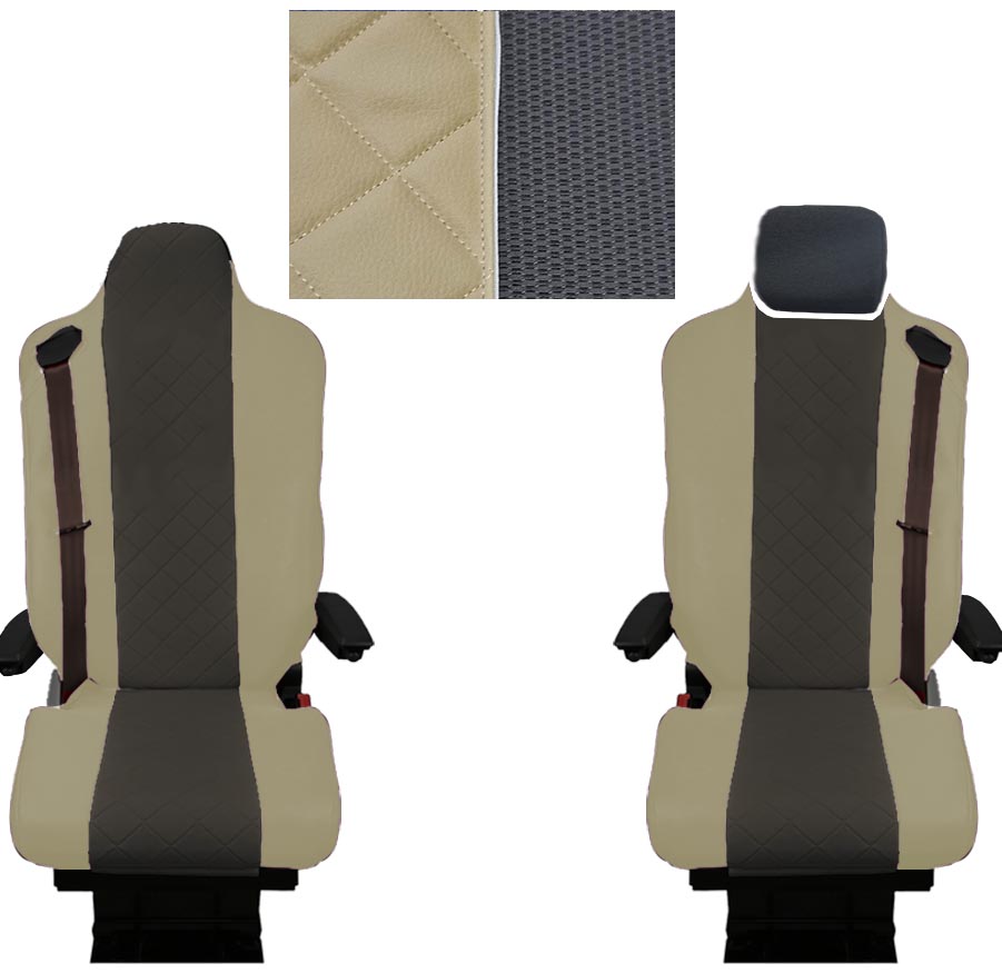 Potah na sedačku Renault T je vyroben z kvalitního kombinovaného materiálu – eko kůže a prodyšné textilie,