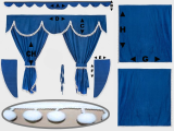 Set záclonek na truck, barva modrá s černou třásní XX